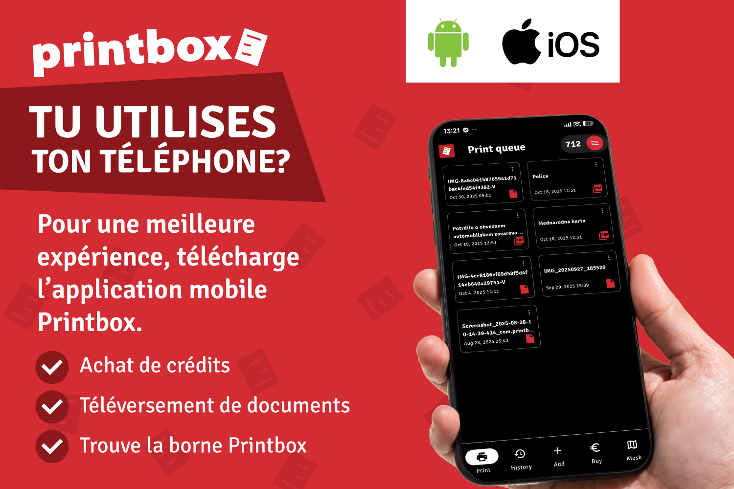 Pour l'impression, vous avez besoin de crédits Printbox.