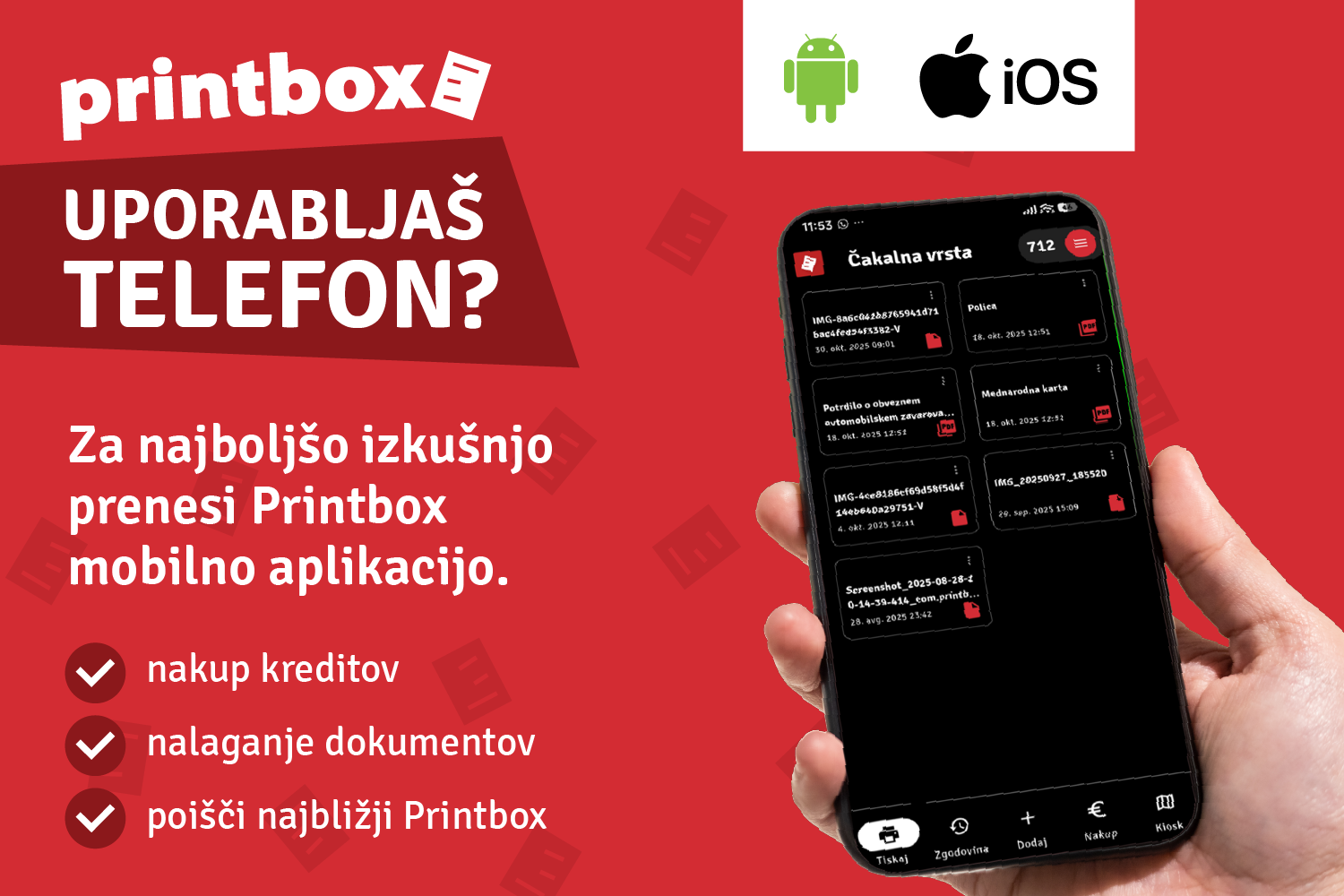 Uporabljate telefon? Prenesite mobilno aplikacijo Printbox.